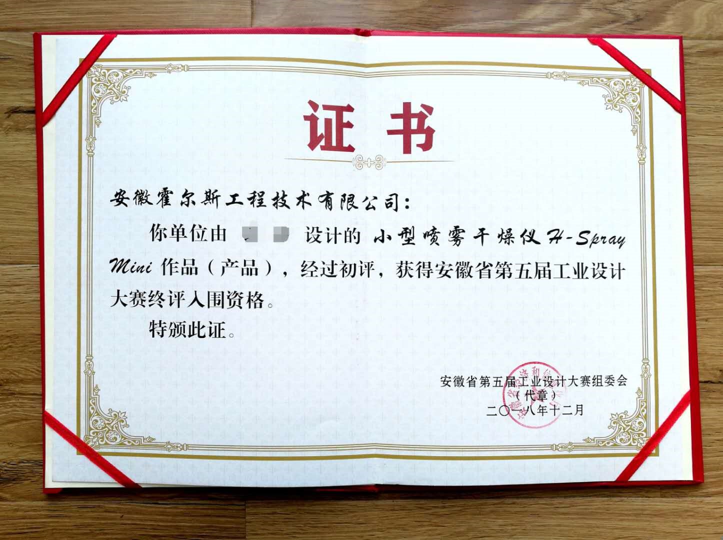 近日,由省经济和信息化委主办,安徽经济报社、各市经济和信息化委、有关行业协会等协办组织的安徽省第五届工业设计大赛揭开获奖名单。安徽草莓视频免费看下载工程技术有限公司研发设计的小型喷雾干燥仪H-Spray Mini成功入围此次大赛终极资格。